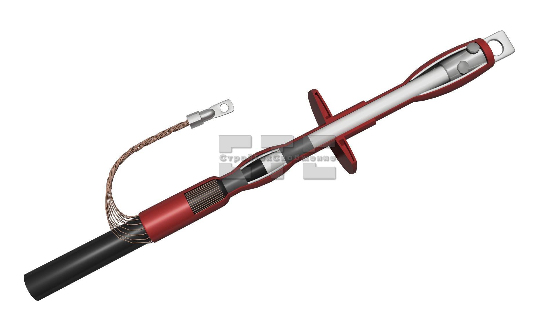 В одном комплекте имеется весь необходимый включает в себя материал, рассчитанный на 3 фазы. Здесь имеются все элементы, требуемые для монтажа на кабеле с проволочными экраном. При этом входящие в комплект болты выполнены из сплава Д16Т.