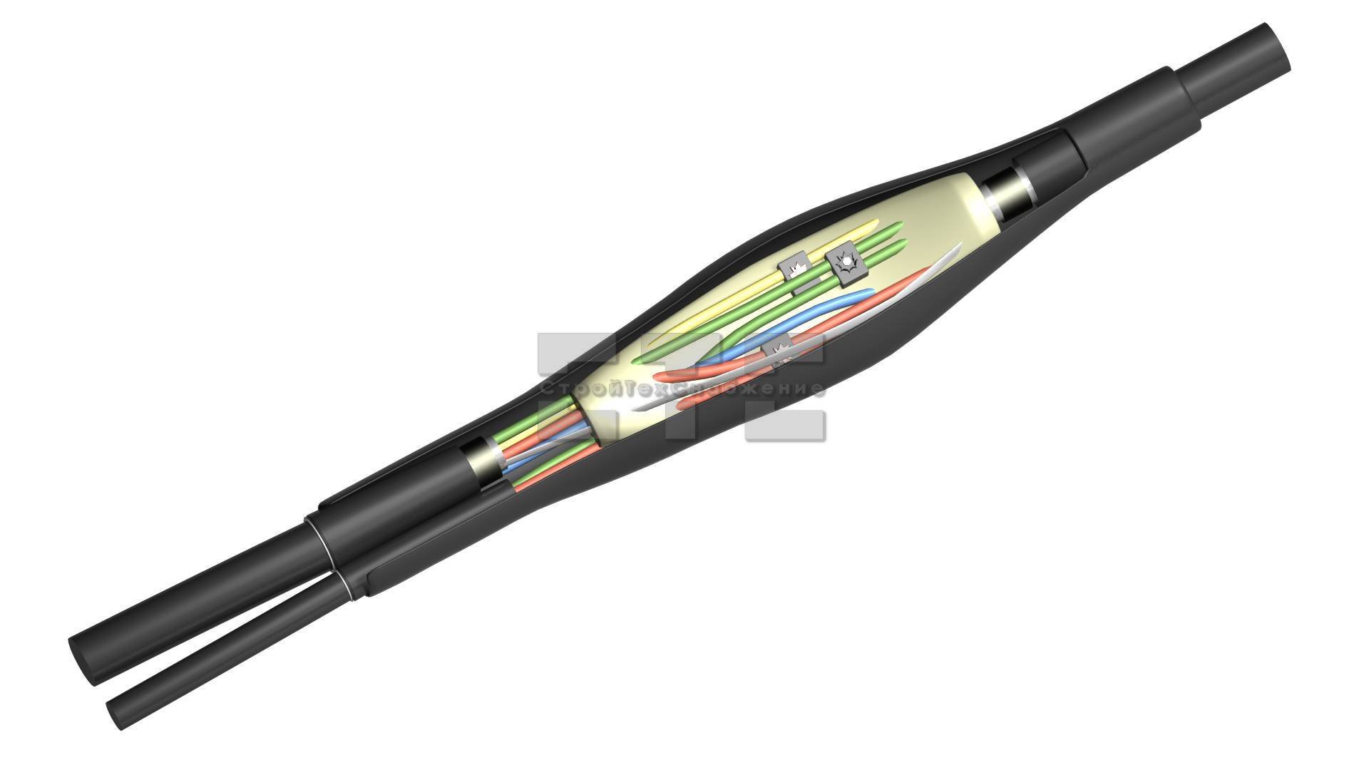 Кабельные жилы выполнены из алюминия и меди с сечением от 10 до 240мм² в зависимости от выбранного типа. Данная разновидность муфт показала себя крайне эффективной при работе в грунте и кабельных каналах. Температурный их диапазон варьируется от +50 до -50ºС. В условиях относительной влажности до 98% данный показатель может доходить до 35ºС.