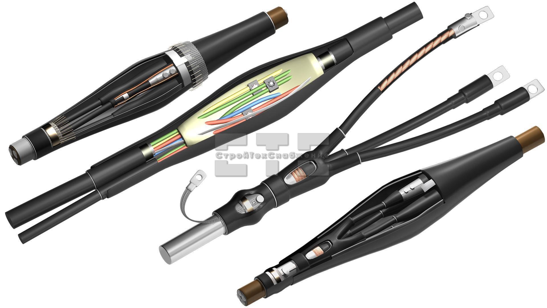 Также для муфты, используемой для ответвления кабеля, используют такие элементы как мастичная подмотка желтого цвета, усадочные трубки, применяющиеся для выполнения выравнивания напряженности электрополя, эластомерная двухслойная трубка. Чтобы выполнить восстановление экрана из металла, используют сетку из меди, присоединяемую к экрану проволочного типа посредством использования механического соединителя. Организация внешней герметизации выполняется посредством использования трубки толстостенного типа, а также двухпалой перчатки. Данные соединители поставляются в комплекте с ответвляемыми муфтами.