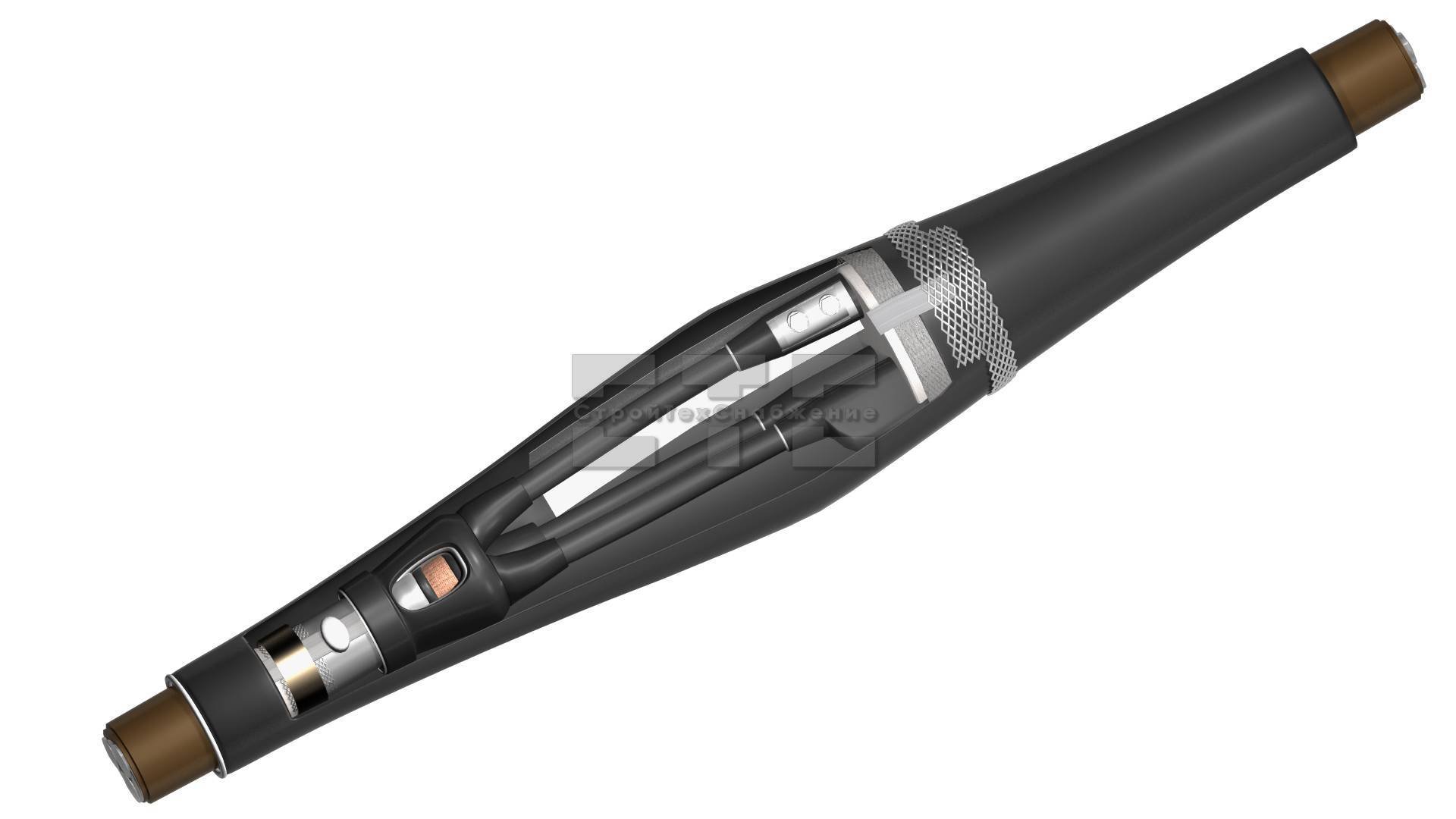 Соединение токопроводящих жил осуществляется посредством болтовых соединителей, оснащенных срывными головками. Дополнительно последние необходимо покрыть специальными пластинами из мастики. Подобный метод позволяет эффективно выравнивать напряженность электрического поля.